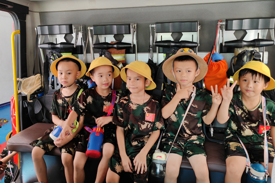 在消防站,小朋友们有序参观了各种消防车及消防器材,认真听消防指战员讲解各种消防器材的功能和使用方法,面对各式各样的消防车辆和器材装备的孩子们,满眼都是兴奋和好奇,全都争先恐后地围绕在消防员身边,登车体验当一次“小小消防员”。